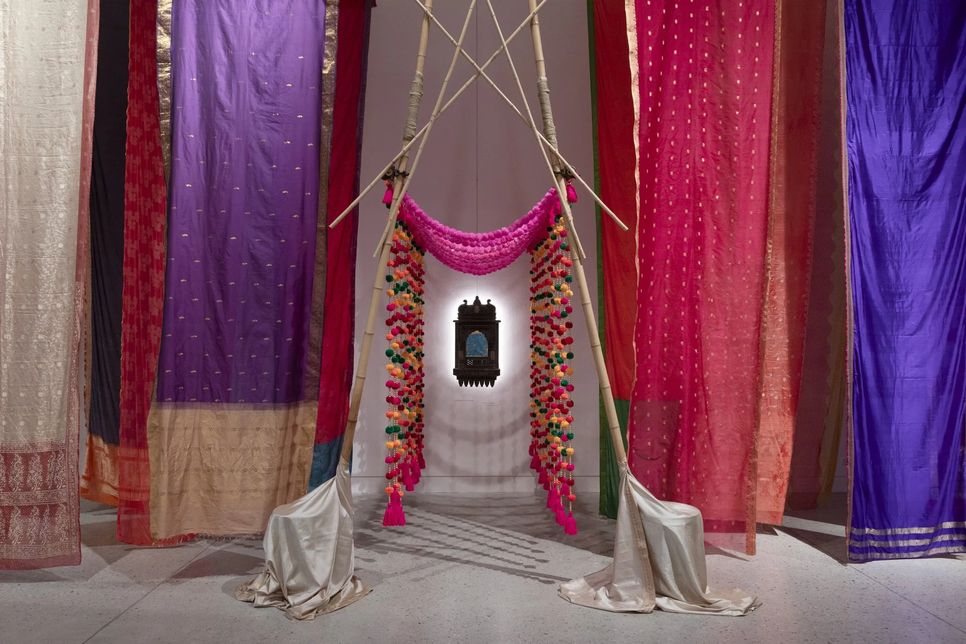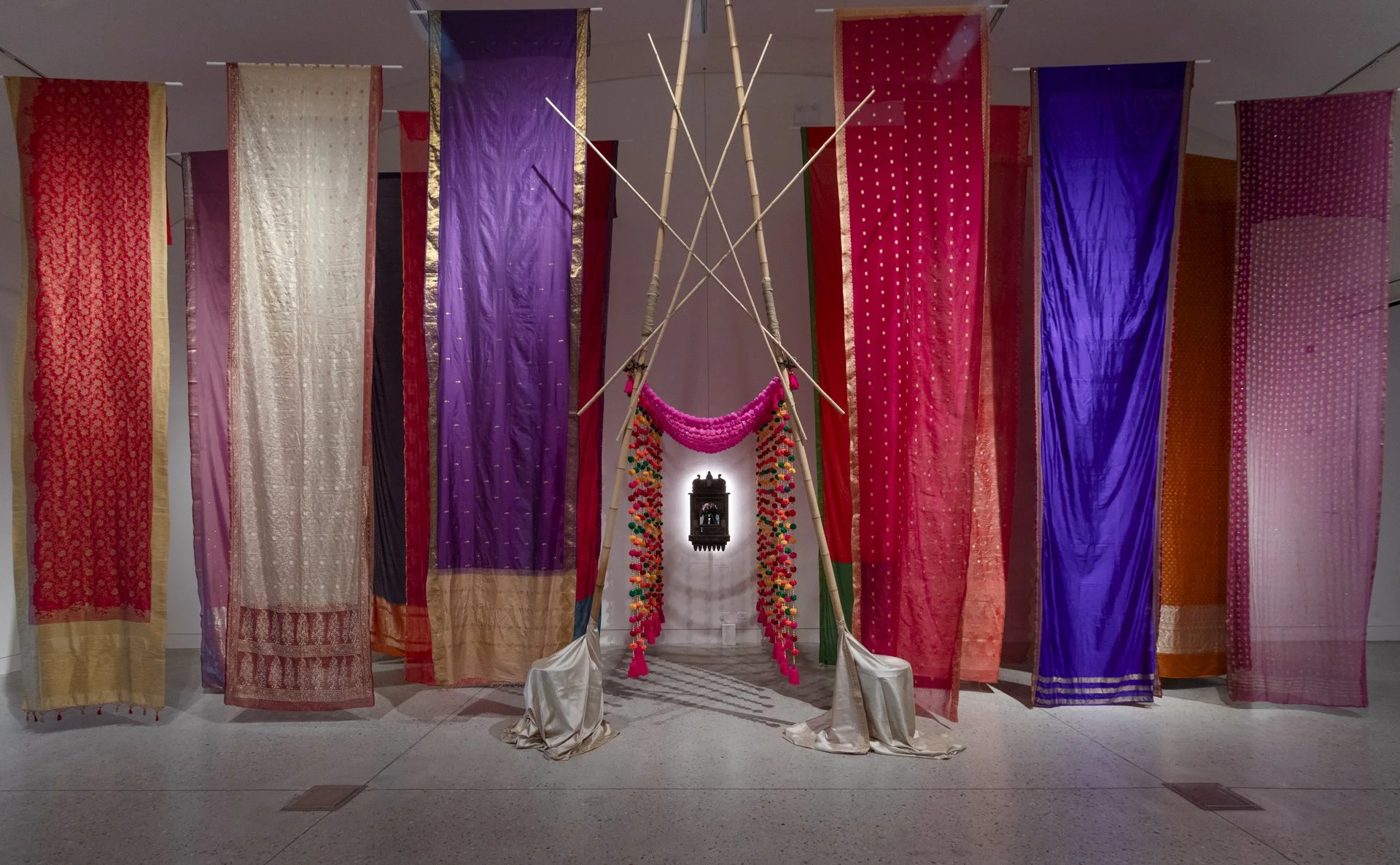 This exhibition honours the call to acknowledge and preserve South Asian cultural heritage through texture, colour and pattern. Sari gently encourages the audience to consider the importance of cultural practices in the modern context of globalisation. Here we observe the dismantling and reconstruction of the self, underlining the importance of honouring one’s truth as an act of radical self-care.