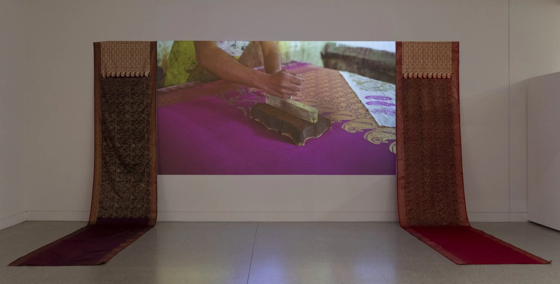 Olmo’s practice considers the ever-changing nature of maintaining equilibrium between her South Asian and Australian cultural identities. Sari celebrates the personal journey the artist has embarked on, to cultivate a wholistic identity which respects both past and present.