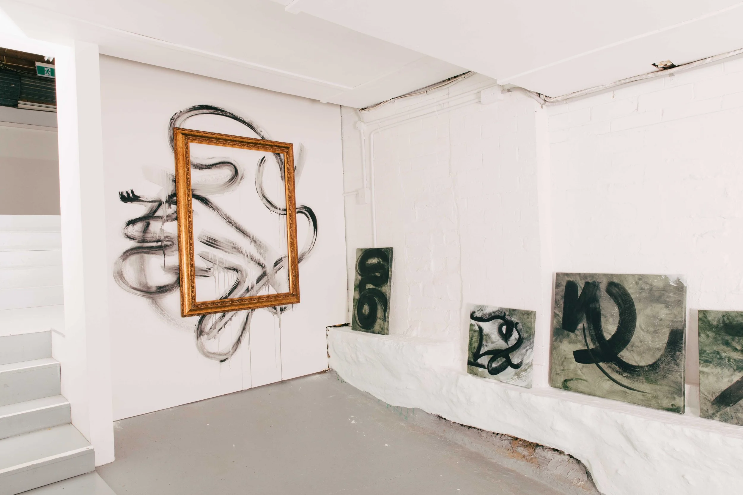 This is a hurried, personal collection of paintings. Created in a short time frame, harnessing the energy and forced dynamism of my body, examining intention and output.